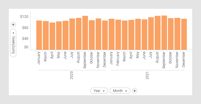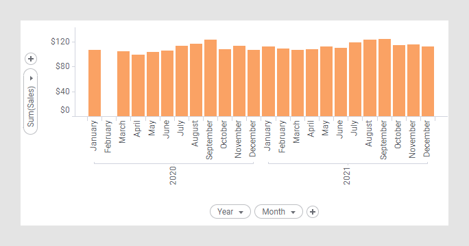 For example, if you have a data table containing some sales data for each month during two years, but the data for February is missing for 2020, the different options will give the following results: