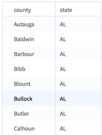 In this example, we look at the election92 dataset, a 3,141 row dataset with information about each county in the United States at the time of the 1992 election. Included in this data are the county name and state as well as statistics about the county demographics and voting patterns.