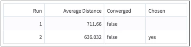 | Number of Random Starts | Specifies the maximum number of runs performed for the k-means method, with random initiations. Increasing this value also increases processing time for the algorithm because it is, effectively, increasing the number of times the k-means algorithm is run overall. Therefore, while increasing the
