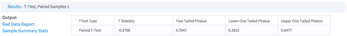| Second Column | The second measure to compute the t- test on. This must be a numeric column. |