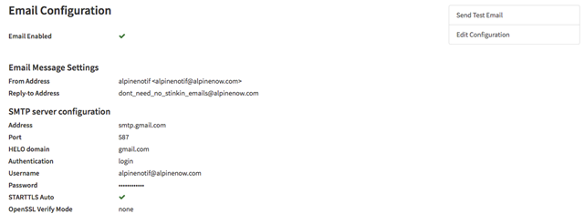 Caution: If the Username and Password are not set, SMTP authentication is not enabled. An SMTP server that does not require authentication is vulnerable to malicious activity. Proper network security, including host whitelisting and firewall and routing rules, should be ensured. - Click Update to save the changes.