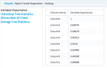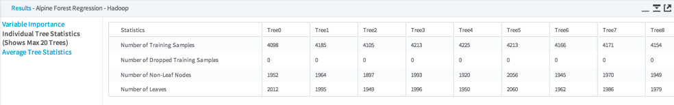 Individual Tree Statistics - Shows the results for each Decision Tree in the model, up to a maximum of 20 trees.