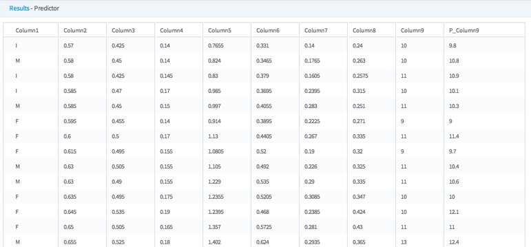 The P_ column can be compared to the actual values of the dependent column (in this case Column9) in order to assess the accuracy of the model.