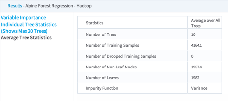 Average Tree Statistics - Provides a snapshot summary of each tree used in the model.