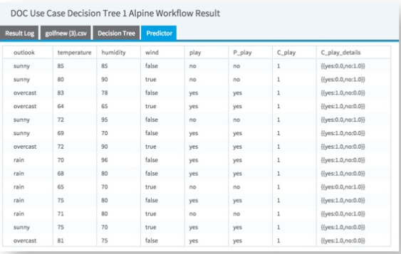 The C_play details column indicates the confidence for each possible value of the dependent variable.