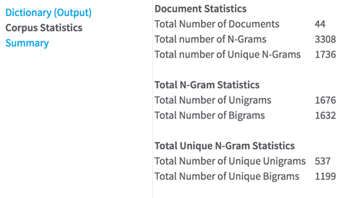 For more detailed information about working with N-gram Dictionary Builder, see Test Corpus Parsing.