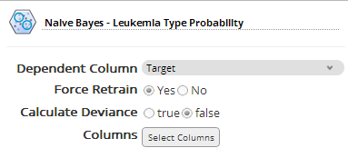 The Naive Bayes Operator is configured with the Target column as the dependent variable, as follows: