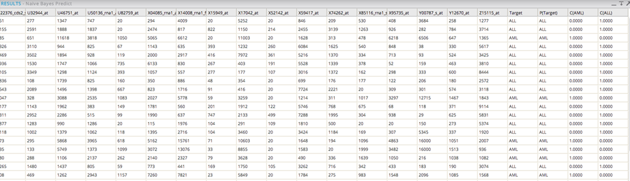 - Running the model now provides predictions for which type of leukemia each sample row contains with high confidence, illustrating the predictive power of a Naive Bayes model.
