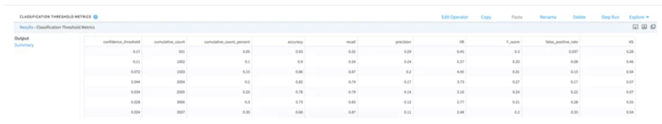 For more information about this operator and its available metrics, see Prediction Threshold.