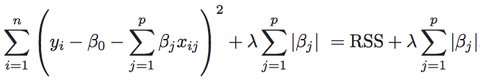 Minimizes the quantity above. The coefficients shrink toward zero, with some coefficients becoming exactly zero to help with variable selection. Lasso constrains the sum of the absolute values of the coefficients in the loss function. L1 Regularization gives sparse estimates. Namely, in a high dimensional space, many of the resulting coefficients are zero. The remaining non-zero coefficients weigh the explanatory variable(s) (X) found to have importance in determining the dependent variable, Y.