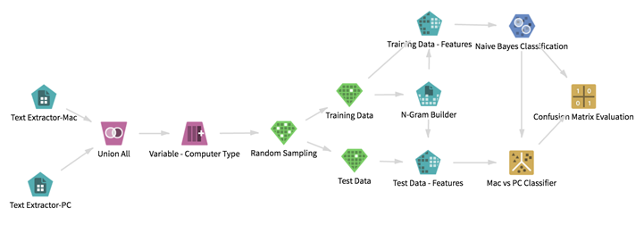 Model your analytics process with a directed graph of operators called a workflow. Workflows combine data sources and operators (algorithms and transformations).