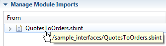 Hover the mouse over an imported application or interface's name to show the path of the originating Studio project, rooted at the Studio workspace.