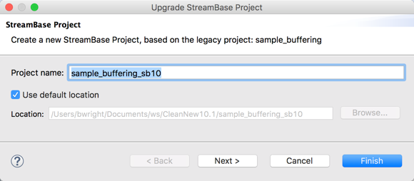 The wizard also runs automatically when you import an unconverted project using the Load StreamBase Samples dialog.