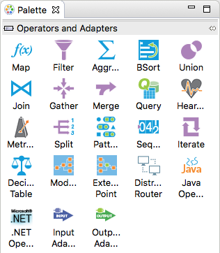 The result is to show separate icons for Input Adapters, Output Adapters, Java Operators, and the .NET operator: