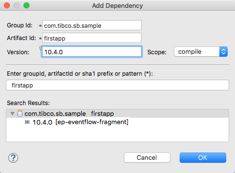 ep-eventflow-fragmententry (because your local Maven repository has artifacts from previous StreamBase releases), select the top entry, whose version number matches the current StreamBase release.Click .