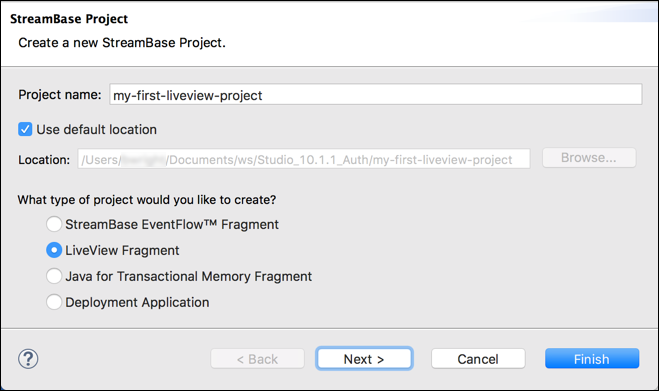 In the StreamBase Project panel, enter