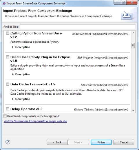 You can download components from the StreamBase Component Exchange directly into StreamBase Studio 6.5.3 or later.