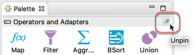 Instead of using a separate Palette view, you can dock the Palette inside the EventFlow Editor canvas. This lets you expand the EventFlow Editor to full screen without losing the Palette.