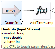 | Show separate entries for Input, Output Adapters and Java Operators | The Palette view by default contains a single icon labeled Adapters, Java Operators that you drag to the canvas. Once there, a dialog opens that lets you select one or more adapters or global Java operators