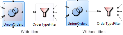 Enable this option (default) to show tiles around component icons, whose left and right edges are where ports attach. Disable to remove the tiles. The selection outline still appears with or without tiles.
