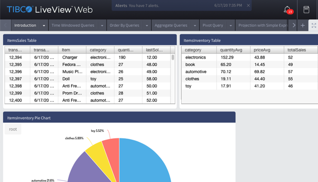 This opens the TIBCO LiveView™ Web session that displays the tables of the running TIBCO LiveView session: