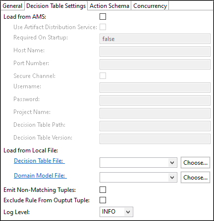 | Decision Table Version | Enter a string value to load a specific decision table version from AMS, or leave blank to load the latest version. |