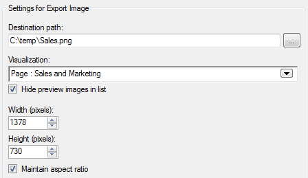 | Maintain aspect ratio | Select this check box to make sure that the aspect ratio of the exported image is the same as the current ratio of the visualization in the analysis. |
