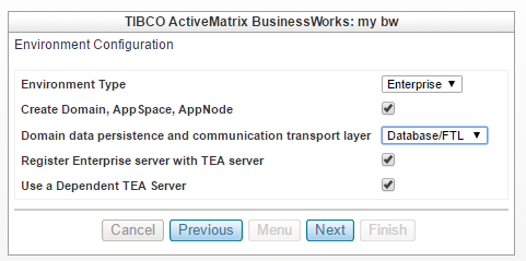 Selecting this option creates a TEA component for TIBCO Silver Fabric Enabler for TIBCO Enterprise Administrator and also sets the dependency of BusinessWorks component on the TEA component. TIBCO BusinessWorks component then acquires the URL of TEA server and automatically registers to the TEA server.