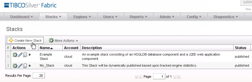 - In the TIBCO Silver® Fabric Administration Tool, select Stacks > Stacks.