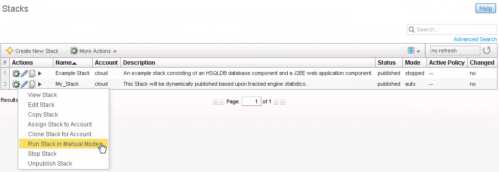 - After you have created your stack, use Publish Stack, available from the Actions drop-down list, to make it available to run.