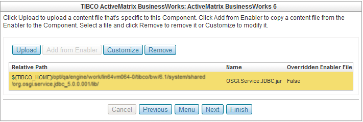If needed, you can upload a content file (for example, the JDBC Jar file for mysql) specific to this component from this dialog.