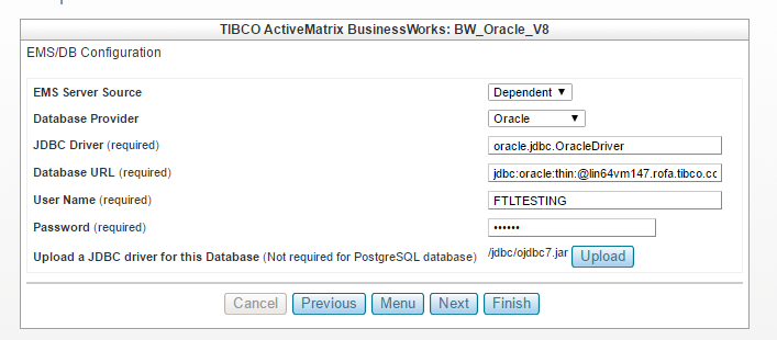 - Unless the database provider is PostgreSQL, click Upload to upload a JDBC driver for the database.