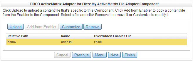 Add/Override/Customize Enabler and Component-specific content files. Relative paths to external jar files that were added, may be removed with that window.