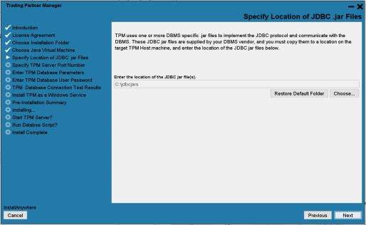 .jarfiles (for example, C:\jdbcjars). - Click Next.