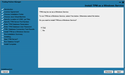 - Select Yes if you would like to install iWay TPM as a Windows service.