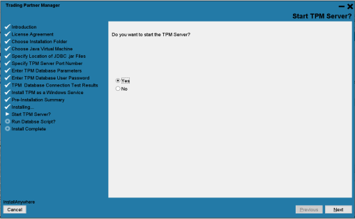 When the installation has finished, a prompt to start the iWay TPM server displays, as shown in the following image.