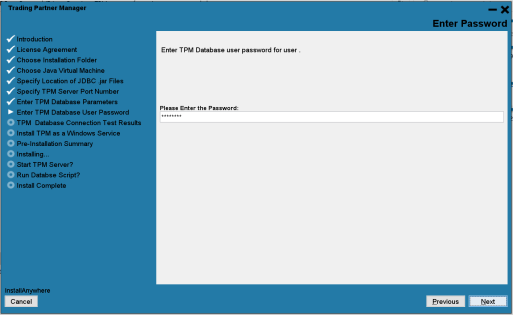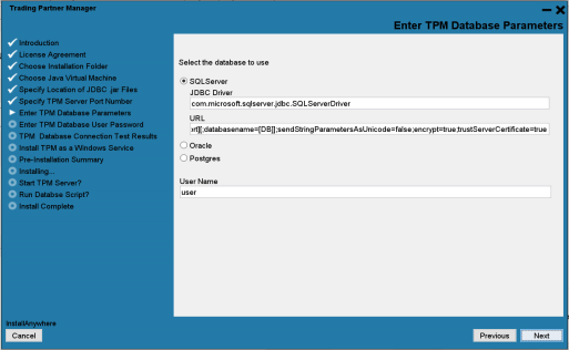 The Enter TPM Database Parameters screen displays, as shown in the following image.