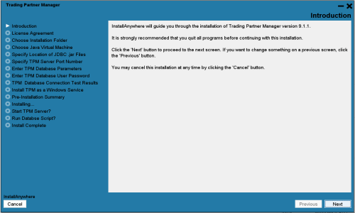 - Double-click the installation file (for example, ibi_sm-edi_9.1.1-tpm.exe).