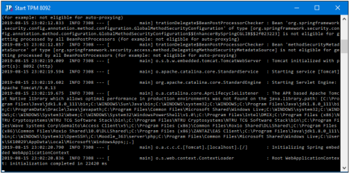 Clicking Start TPM opens a Windows command prompt that automatically runs the startup script (tpmstart.bat), as shown in the following image.