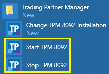 The iWay TPM installation adds a Trading Partner Manager entry to the Windows Start menu, as shown in the following image.