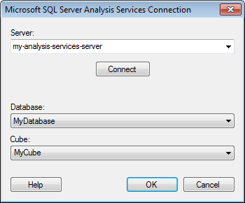 Use this dialog to connect to Microsoft SQL Server Analysis Services.