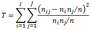 The p-value is then calculated from the chi-square distribution with (I-1)(J-1) degrees of freedom.
