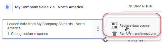 Klicken Sie im unteren Teil der Datenquelle neben dem Schritt „Geladene Daten“ auf Datenquelle ersetzen