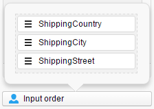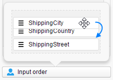 Neste exemplo, três colunas foram configuradas com prompts: ShippingStreet, ShippingCity e ShippingCountry.O pop-over Ordem de entrada mostra a seguinte ordem: ShippingCity, ShippingCountry, ShippingStreet.