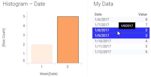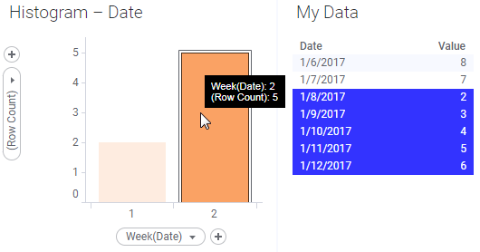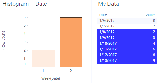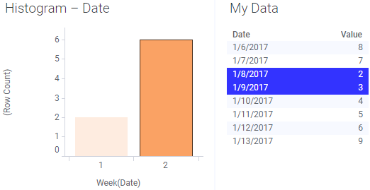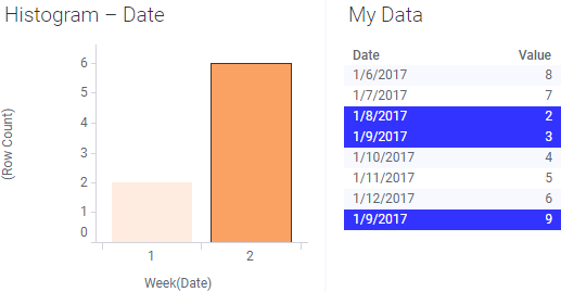 Se a tabela de dados receber uma linha adicional para a semana 2 e os dados forem recarregados, a nova linha será automaticamente incluída na seleção marcada: