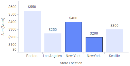 Ниже показано, как данные продаж распределяются по разным расположениям, но, к сожалению, данные Нью-Йорка разделены на «Нью Йорк» и «Нью-Йорк».