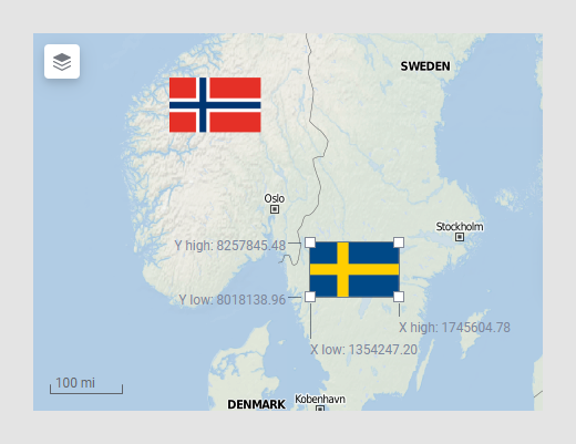 Для изображения отображается рамка с ползунками по углам. Отобразятся координаты углов.