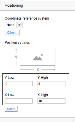 为此,想象一下坐标系在图像之上的情景(如下图所示)。可指定任何 X 轴和 Y 轴值范围,前提是这两个轴上使用相同的刻度。在这个设想的坐标系中,X 轴值范围为从 0 到 10,Y 轴的值范围为从 0 到 5。