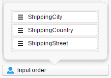 Neste exemplo, três colunas foram configuradas com prompts: ShippingStreet, ShippingCity e ShippingCountry.O pop-over Ordem de entrada mostra a seguinte ordem: ShippingCity, ShippingCountry, ShippingStreet.