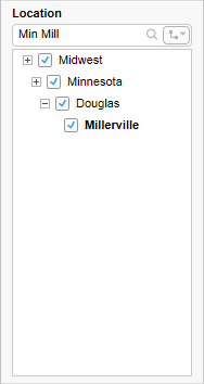 Структура дерева в фильтре иерархии может быть очень развернутой. Чтобы найти определенные части иерархии, можно ввести поисковый запрос в поле поиска. Отобразятся элементы структуры дерева, которые начинаются с введенного вами текста.